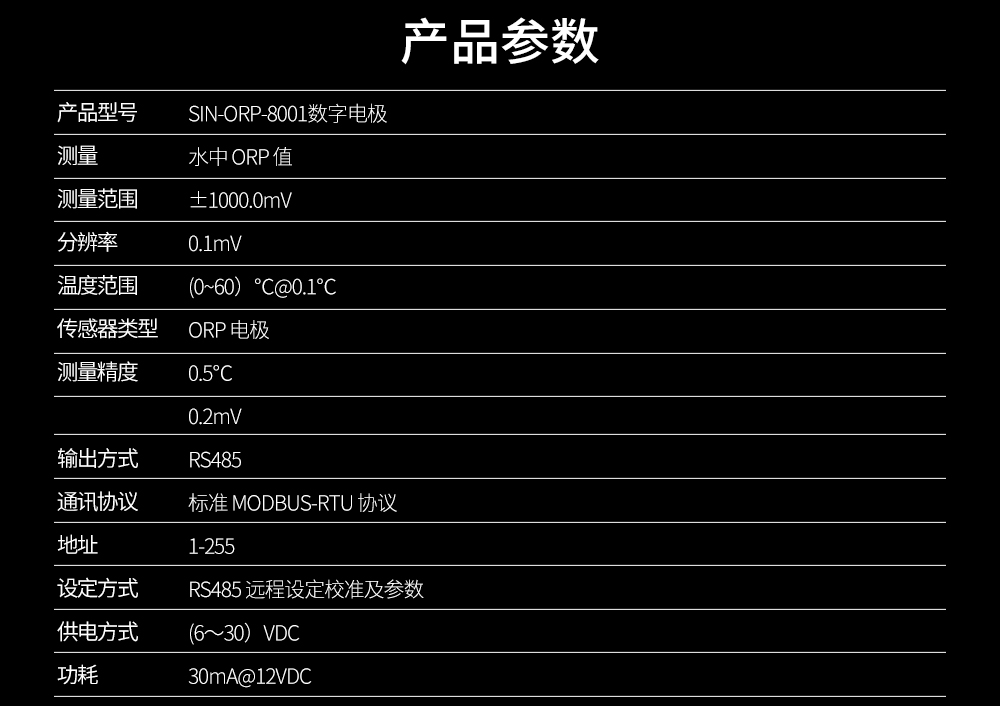 簡要描述:ORP 數字式電極,帶數字接口(RS485*1),可用于測量量程范圍內水溶液體系中 ORP 值的變化情況。