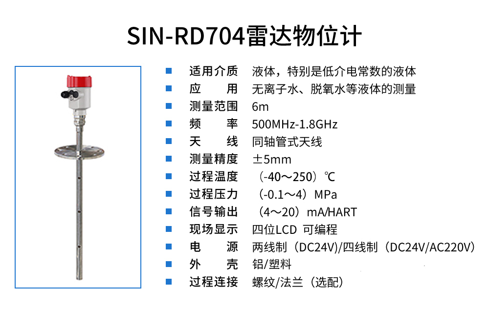 當(dāng)前位置:首頁 > 雷達(dá)液位計(jì) > 聯(lián)測_SIN-RD704雷達(dá)液位計(jì)_適用于無離子水、脫氧水等液體_