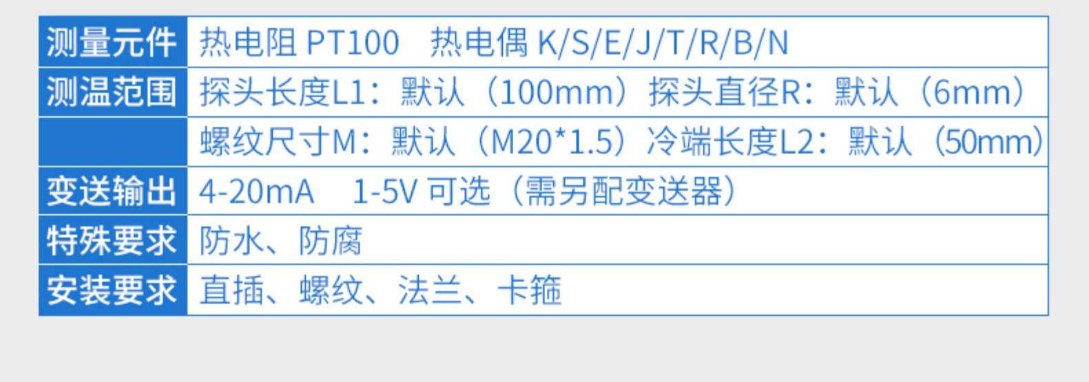 簡要描述:聯測溫度傳感器可以直接測量各種生產過程中液體,蒸汽和氣體介質以及固體表面的溫度,通常和顯示儀表、記錄儀表等配套使用。